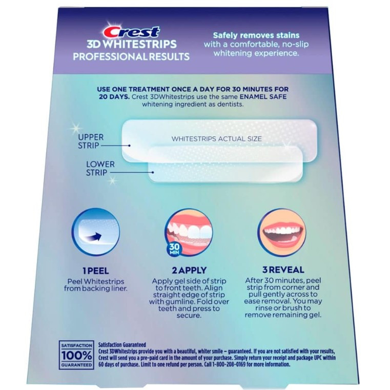 - ideálne použiť dve takéto balenia v priebehu jedného roka pre dokonale biele zuby počas celého roka, prípadne po polroku prebieliť zuby niektorým polovičným balením pásikov Crest z ponuky nášho e-shopu.